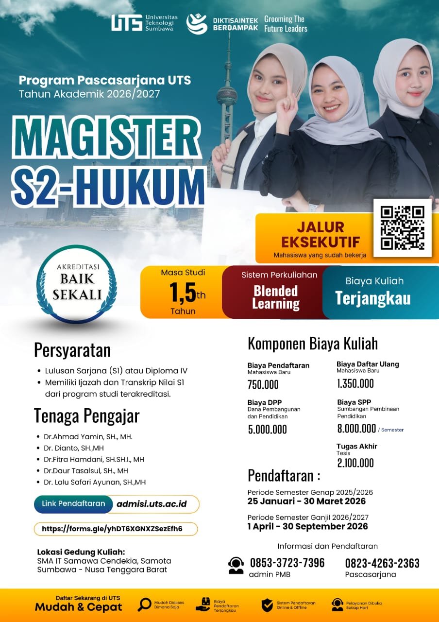 Selamat !!! Kampus UTS Sumbawa Buka S2 Magister Hukum