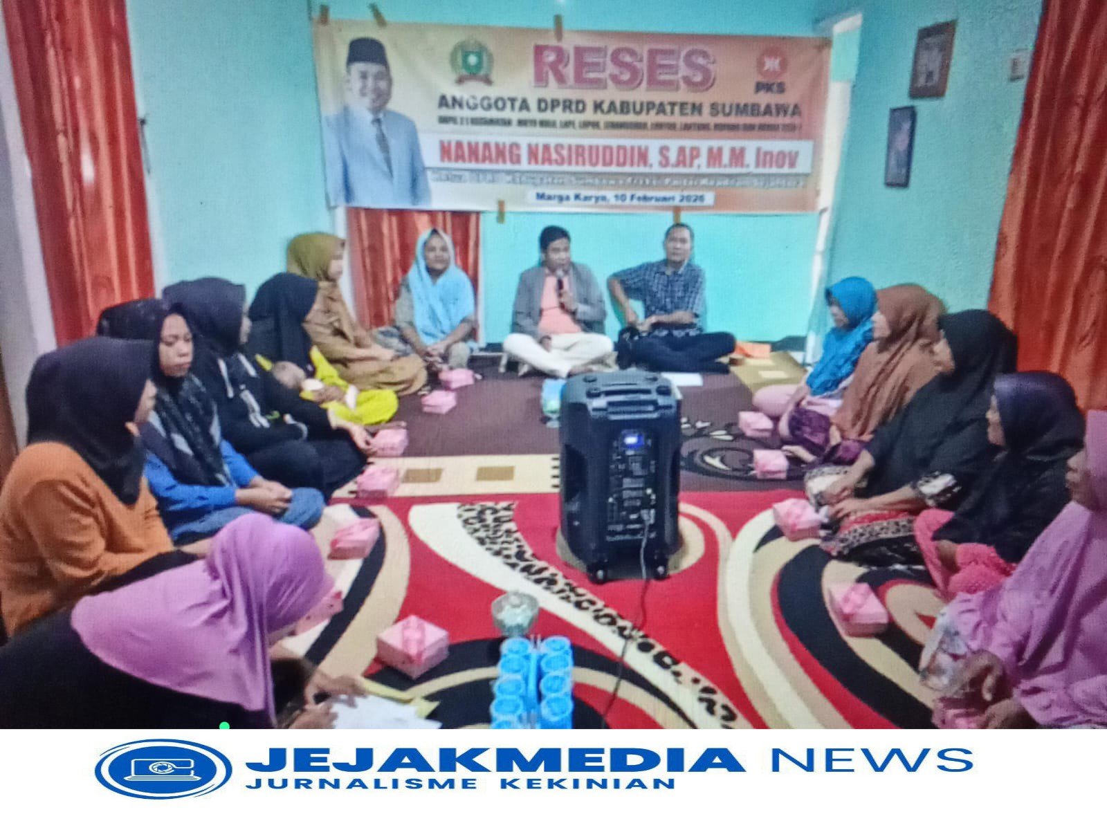 SUMBAWA, JEJAKMEDIANEWS|Ketua DPRD Kabupaten Sumbawa, Nanang Nasiruddin SAP., MM Inov sukses mengawali agenda reses sidang pertama tahun 2026 di Dusun Karya, Desa Marga Karya, Kecamatan Moyo Hulu, pada Selasa, (10/2). Pertemuan yang dimulai pada pukul 09.00 WITA tersebut menjadi kesempatan bagi Ketua DPRD untuk menyampaikan perkembangan program pembangunan yang telah dijalankan berdasarkan aspirasi masyarakat pada masa reses sebelumnya.