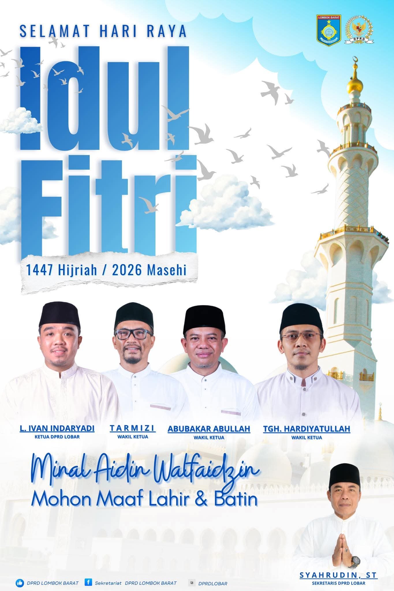 Atas nama pimpinan dan segenap anggota DPRD Kab. Lombok Barat, mengucapkan: Selamat Hari Raya Idul Fitri 1447 H/ 2016 Minal aidin walfaidzin, mohon maaf lahir dan batin. . . #idulfitri #IdulFitri1447H Berita ini dibaca : 7 Navigasi pos Ketua Fraksi Gerindra DPRD Sumbawa Andi Rusni, Mengucapkan Selamat Hari Raya Idul Fitri 1 Syawal 1447 HKomisaris Independen Bank NTB Syariah Mengucapkan Selamat Hari Raya Idul Fitri 1 Syawal 1447