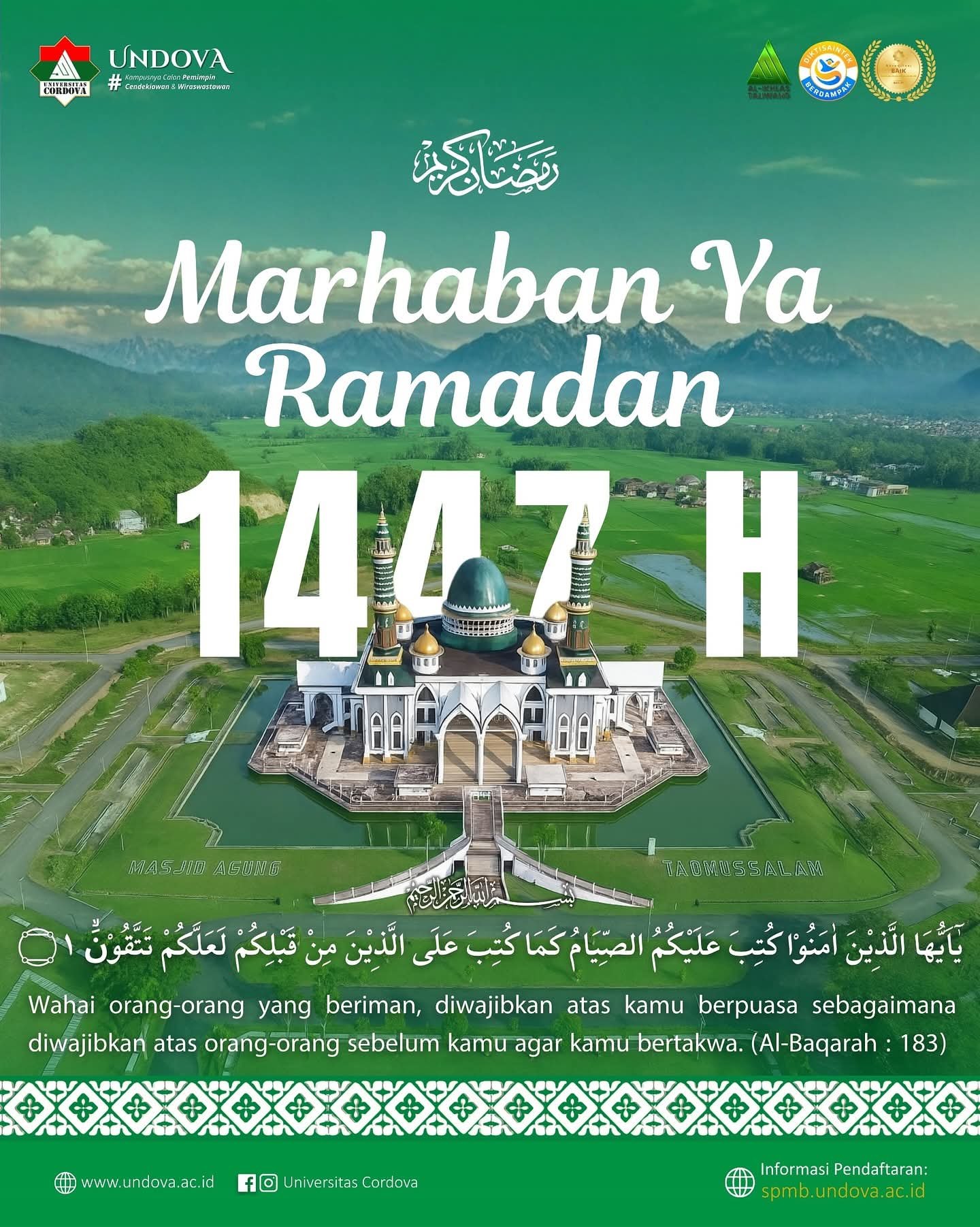Rektor dan segenap civitas akademika Universitas Cordova mengucapkan selamat menunaikan ibadah puasa Ramadan 1447 H.
