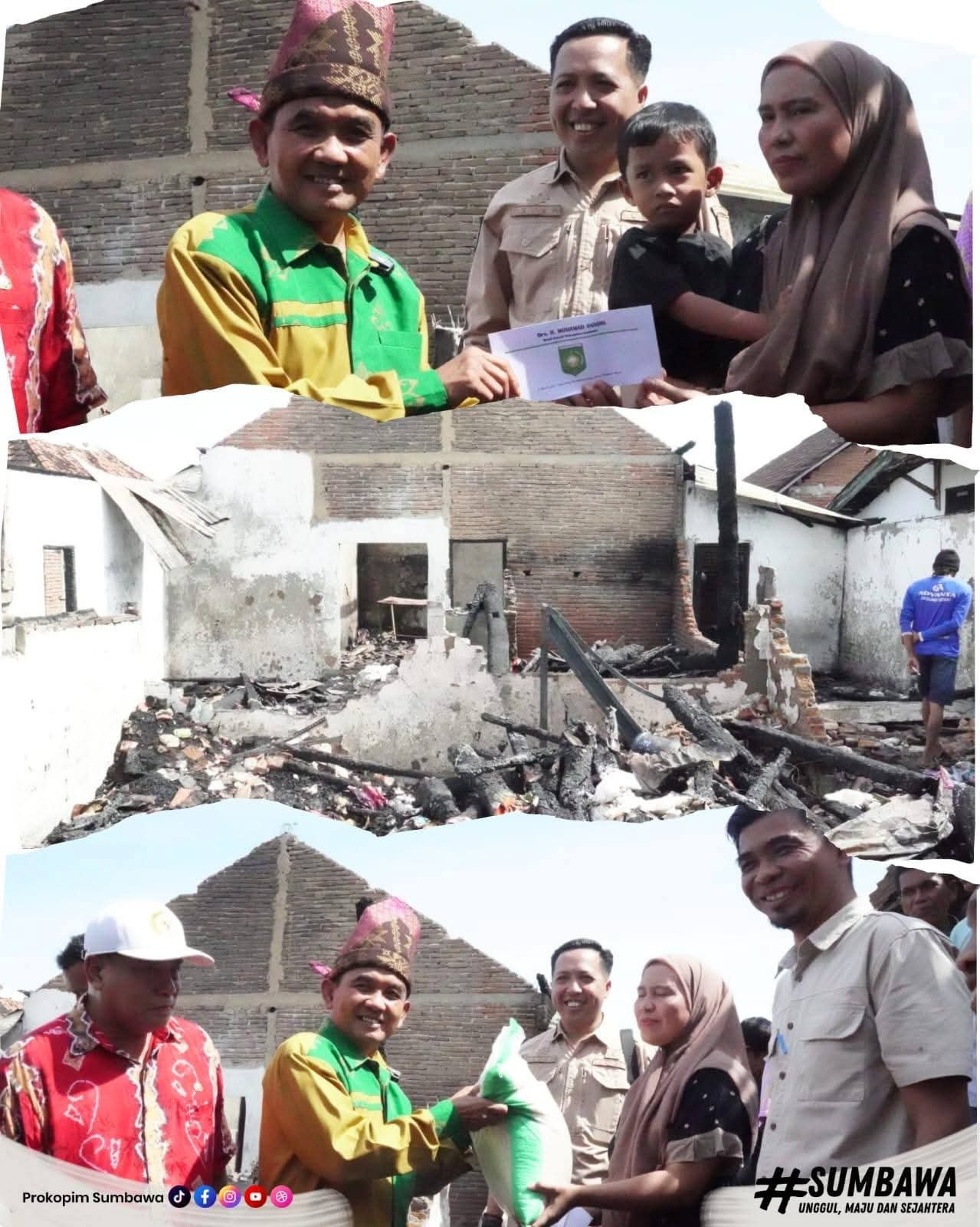 Sebagai bentuk kepedulian, Pemerintah Kabupaten Sumbawa menyalurkan bantuan kepada para korban kebakaran berupa uang tunai, beras, air bersih, mie instan, paket sembako, telur, terpal, matras, dan selimut, guna mendukung proses pemulihan awal.