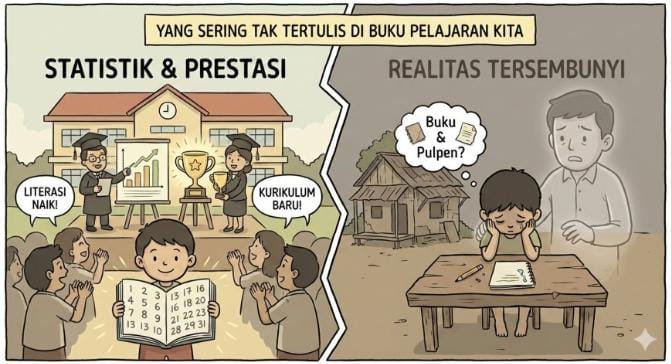 Esai ini tidak sedang menghakimi bahwa sekolah telah gagal atau orang tua telah lalai. Sebaliknya, ia mengajak kita melihat betapa rapuhnya anak-anak kita ketika sistem terlalu yakin bahwa semua murid berdiri di “garis start” yang sama. Saat buku tulis dianggap hal sepele, kita lupa bahwa bagi sebagian keluarga, ia adalah kemewahan yang harus dipilih di antara kebutuhan perut yang juga mendesak.